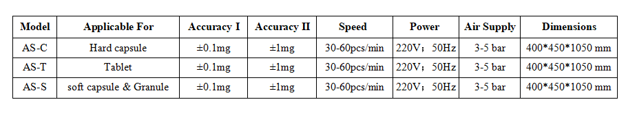 AS Capsule/Tablet/Granule Sample Weight Checker can be used to inspect weights of capsule, tablet, granule and other medicines of batch production. It helps monitoring the condition of pharmaceutical production process, recording sample data and alerting for abnormities to control the production in a more efficient way.
