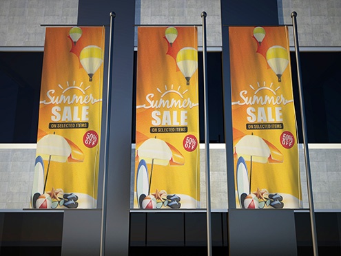 | Banners and flags (fabric) | Swing P.O.P. (PET film) | Label | Wallpaper | |||
